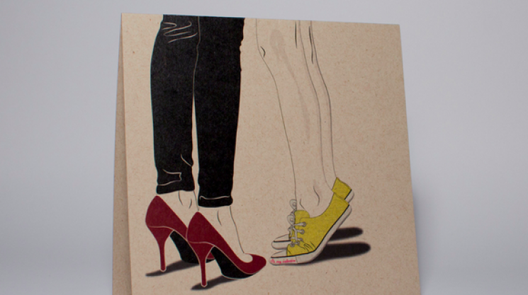 With an interest in creating a dialogue to break the mould and represent all genders equally, Vancouver artist, Sarita Mann has designed non-traditional Valentine's cards. Mann's cards portray her own illustrations, and in this case, for her lesbian and gay Valentine's cards she has shown only the bottom half of the couple where you can only see their legs and feet. The ladies card is exceptionally adorable with one girl in heels and the other in a pair of sneakers standing on her tippy toes - perhaps reaching for that Valentine's kiss. Going along with the same concept, Mann has also created a 'his & hers' card named 'Kisses & Kicks'.