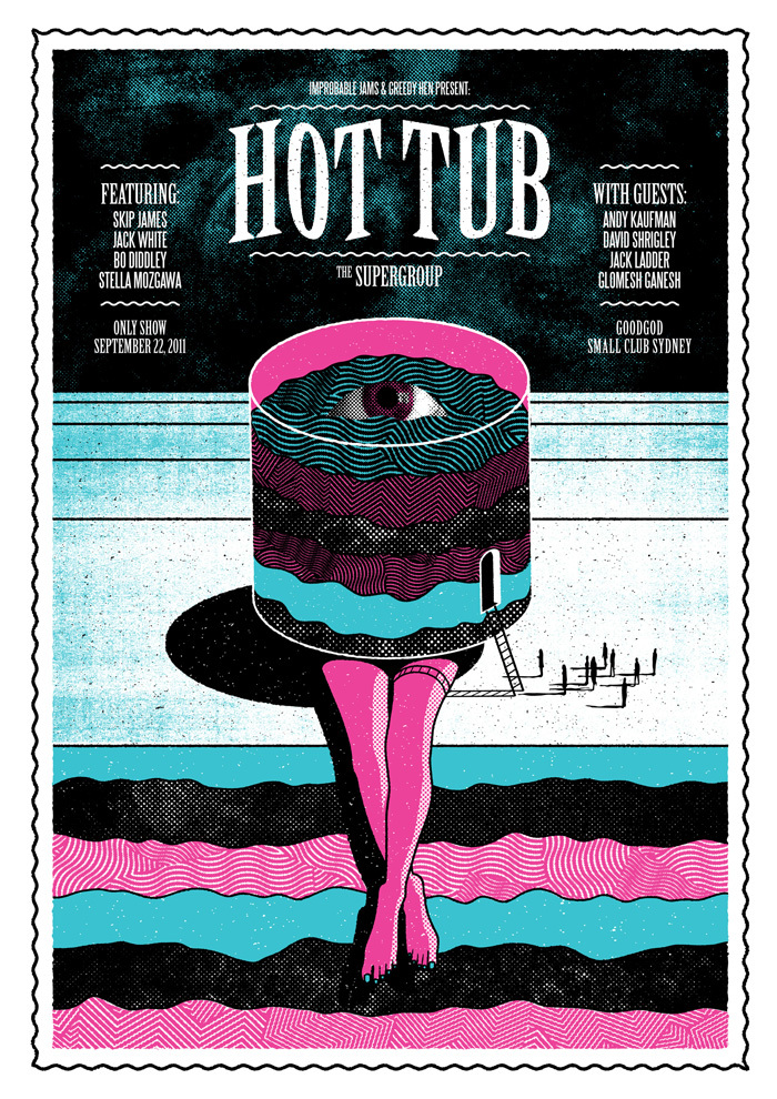 Not quite with the same intentions as Luda once asked, or musical penchant, but “Who is your Fantasy Supergroup and where would they play your dream gig”?” is the question posed by illustrator Andrew Fairclough. His Improbable Jams project then turns these musical mash-ups, no matter how ridiculous, into an on-going series of one off posters, commemorating improbable gigs, played by even more implausible bands. Think a combination of six musicians, from bands including Bat For Lashes and Holy Fuck, plus produced by Nick Cave and Bjork, equals the sadly mythical The Western State. No combination is impossible. Watch out for a screen print exhibition coming soon.